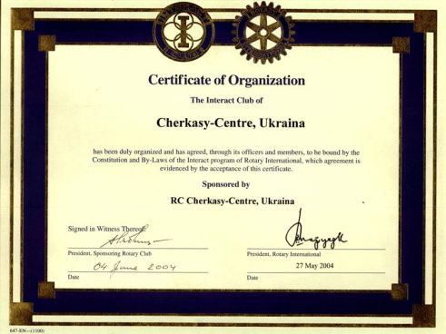 Кe club Interact-Cherkasy a été créé le 23 novembre 2003 à l'initiative du Rotary Club Cherkasy-Centre. Des élèves de plusieurs écoles se sont réunis pour la première fois au sein du club Interact-Cherkasy. ÉCOLE N° 17, Cette école a accueilli le club jusqu'au 31 mai 2008. Le 1er septembre 2009, le club a déménagé au First City Gymnasium à Cherkasy.